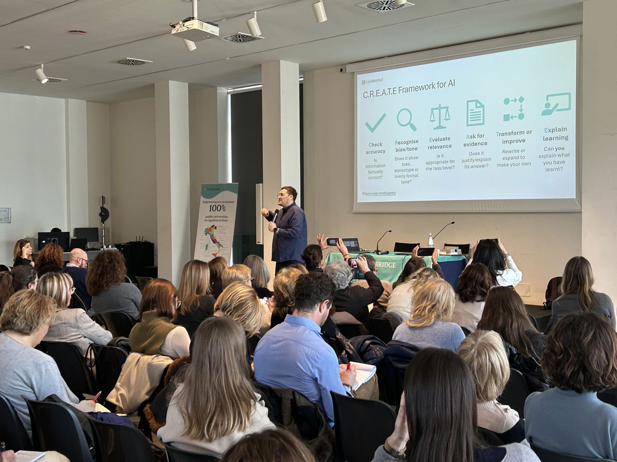 La scorsa settimana i Cambridge Day 2026 hanno attraversato l’Italia facendo tappa a Bari, Pescara, Novara e Bologna, con una serie di appuntamenti che si sono distinti per ricchezza e qualità dei contenuti. Con oltre 900 insegnanti presenti, l’energia in sala è stata la prova più concreta di quanto i temi proposti siano sentiti e urgenti per la comunità ELT: dalla sostenibilità come competenza trasversale, all’integrazione tra insegnamento e valutazione, fino a strategie pratiche per sostenere l’autonomia degli studenti nell’era dell’Intelligenza Artificiale generativa.