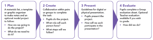 I bambini si impegnano con un argomento, fanno brainstorming, conducono ricerche e poi valutano le idee, lavorando insieme e usando l’inglese dove possono, con l’obiettivo di produrre un lavoro finale da presentare in qualche formato. Inoltre, affrontano la difficoltà di essere in disaccordo con i loro coetanei, ma in un ambiente sicuro e a basso rischio, mentre imparano a gestire sentimenti complessi come la delusione per il fatto che la loro idea non sia stata scelta o la frustrazione di sentire che non tutti stanno contribuendo in egual misura. Sono attivamente incoraggiati a riflettere su come è andato il progetto, con la possibilità di riflettere e implementare miglioramenti la volta seguente.
